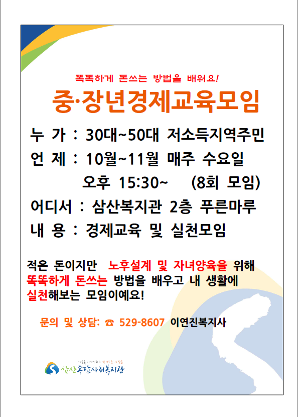 지역내 저소득 중장년 경제교육참여자 모집