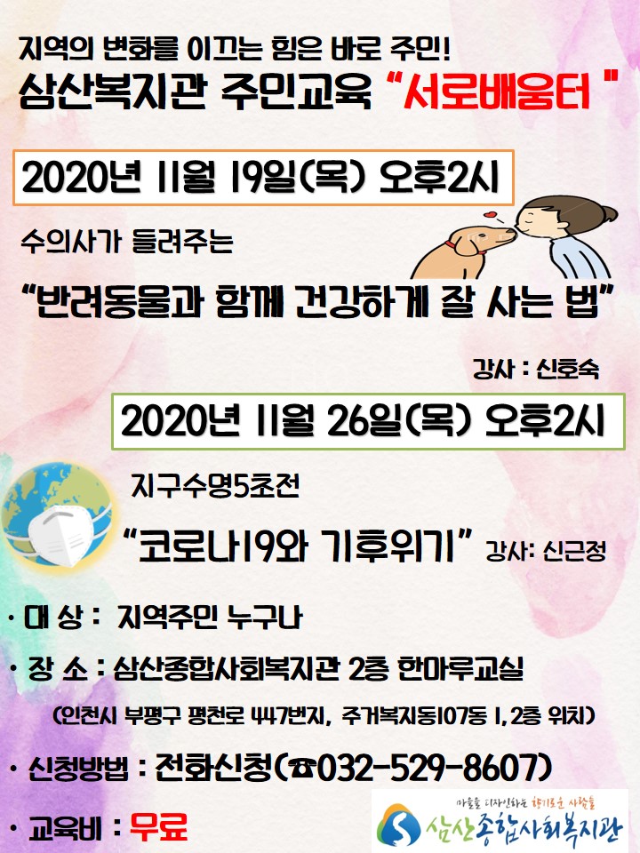 11월 주민들과 함께 나누면 좋은 교육이 있어 안내합니다.