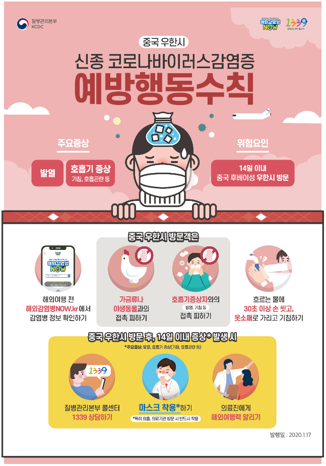 - 발열, 기침 등 호흡기증상 발생 14일 이내 중국 우한시 방문력이 있는