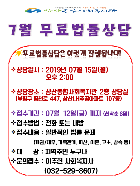 문의 및 접수 : 이주현 사회복지사 032-529-8607