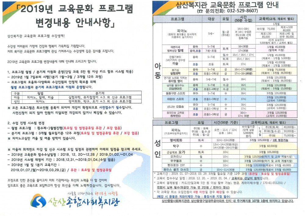 2019년 교육문화 프로그램 변경내용에 대해 안내해 드리고자 합니다.
