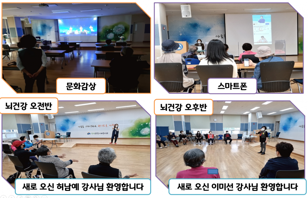 오늘부터 새로 뇌건강교실에 하남예, 이미선 강사님이 새롭게 합류하게 되었습니다. 앞으로 어르신들의 인지건강 향상을 위해 청춘대학은 계속 달려갑니다!